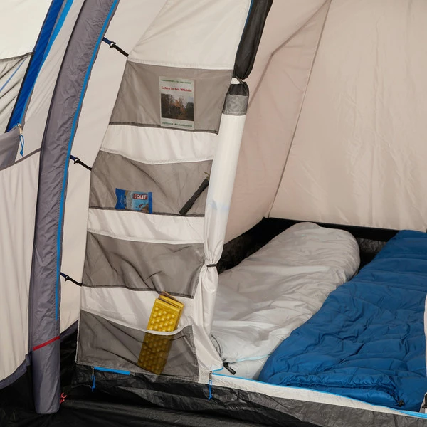 …benötigt eigentlich gar keine Beschreibung. Du musst es lediglich auspacken, flach auf dem Boden ausbreiten und die Luftkanäle mit der beiliegenden Pumpe aufpumpen. AnschlieĂźend kannst du das Zelt bereits fixieren. Der Aufbau erfordert wenig Zeit und ist auch von ungeĂĽbten Zeltaufbauern im Handumdrehen erledigt. Besonders praktisch: Das Innenzelt ist am AuĂźenzelt eingehakt und baut sich automatisch mit auf. Dadurch hast du innerhalb weniger Minuten eine komfortable Unterkunft.
