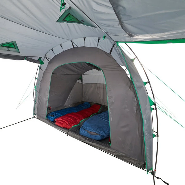 Das Innenzelt bietet ein großes Raumangebot für vier Personen und verfügt über insgesamt vier Netzseitentaschen in denen Brillen, Bücher, Lampe und andere Kleinigkeiten ihren Platz finden. Eine Stoffbahn separiert das Innenzelt, wodurch zwei mal zwei Schlafplätze entstehen. Der Stoff kann bei Nichtgebrauch nach oben gerollt und fixiert werden. Ein großer Lüfter mit Moskitonetz sorgt für ausreichend Belüftung im Innenzelt.