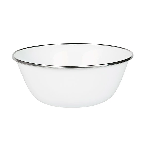 Stabile Schüssel aus Emaille, die sich für kalte und heiße Speisen eignet. Stapelbar und daher ideal für Camper, Bulli, Wohnwagen oder zur platzsparenden Aufbewahrung in der heimischen Küche geeignet.
