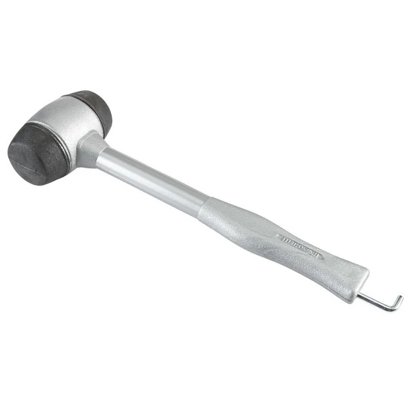 Griffiger, solide verarbeiteter Kunststoff-Hammer mit Metallhaken zum Ziehen von Heringen. Liegt gut in der Hand.