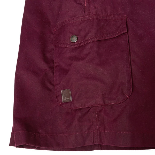 Die wasserabweisenden Eigenschaften des Rocks kommen durch die dünne Wachsimprägnierung des Material. Nach ca. 2-3 Wäschen wäscht sich diese aus und kann eigenständig wieder erneuert werden.