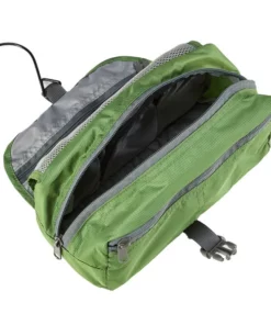 Die mittelgroße Waschtasche hat einen Klappdeckel mit Haken, an dem die Rousay SP ganz klassisch aufgehängt werden kann. Ein Klettspiegel und ein Netzfach für feuchte Dinge wie Rasierer und Zahnbürste befinden sich ebenfalls im Deckel. Unten dran hängt dann die geräumige Kulturtasche mit Platz für große Shampooflaschen. In der Kulturtasche befinden sich innen 3 praktische Steckfächer und außen 1 unterteiltes RV-Fach.