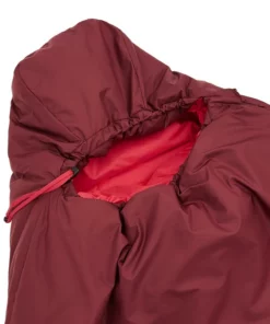 Die Kapuze kannst du bei Bedarf mit einem Kordelzug zuziehen. Der lange 2-Wege-Reißverschluss ist mit einer Schutzleiste versehen, der ein Verklemmen des RVs im Futter verhindern soll. Gleichzeitig dient die Schutzleiste als Reißverschluss-Abdeckleiste, um keine Kältebrücken entstehen zu lassen. Wird es doch einmal zu warm, kannst du den Schlafsack weit öffnen und aufklappen.