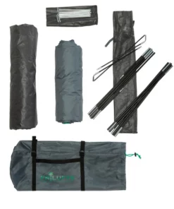 Günstiges Einsteigerzelt für zwei Personen, das sich ideal für erste Wanderungen und andere Outdooraktivitäten eignet. Der Innenraum ist großzügig bemessen und bietet zwei Personen ausreichend Platz.