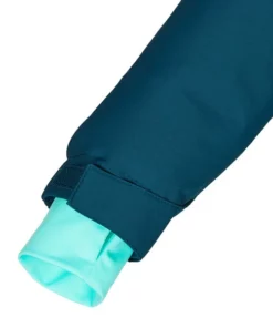 Die elastischen Stulpen schließen gut ab und verhindern, dass kalter Wind ungehindert in die Ärmel gelangen kann. Gegen aufgewirbelten Schnee schützt der integrierte Schneefang. Äußerst praktisch, wenn deine Kids ihre ersten Skiversuche unternehmen oder den Rodelberg hinuntersausen. Damit die Kapuze dabei nicht vom Kopf geweht wird, kann sie hinten per Klettverschluss im Volumen reguliert werden. Vorne sorgt ein elastischer Einsatz für einen guten Sitz. Bei trockenem Wetter kann die Kapuze auch einfach entfernt werden, damit sie beim Spielen nicht stört.